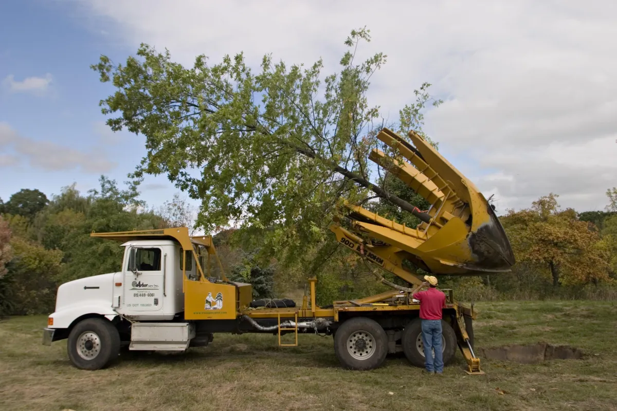 We move trees up to 12-inch trunk diameter with large spade. Larger trees need custom rigging assessment. Your property access and tree species affect what equipment we use.