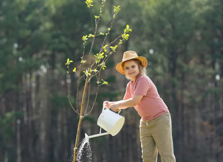 A transplanted tree needs extra water during its first year.